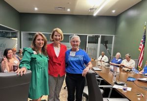 Vikki Goodwin spoke about her priorities as the next Lt. Governor of Texas. Shown are Kelly Blackburn, Chair of the Ellis County Democratic Party; Vikki Goodwin; and Nancy Post, TDW-EC President.